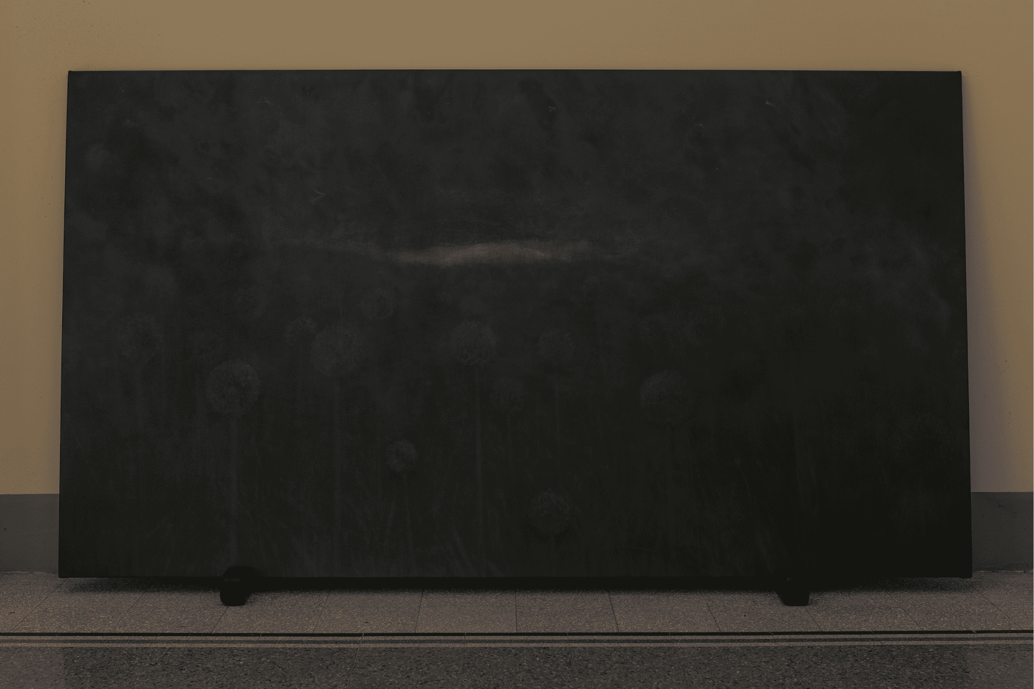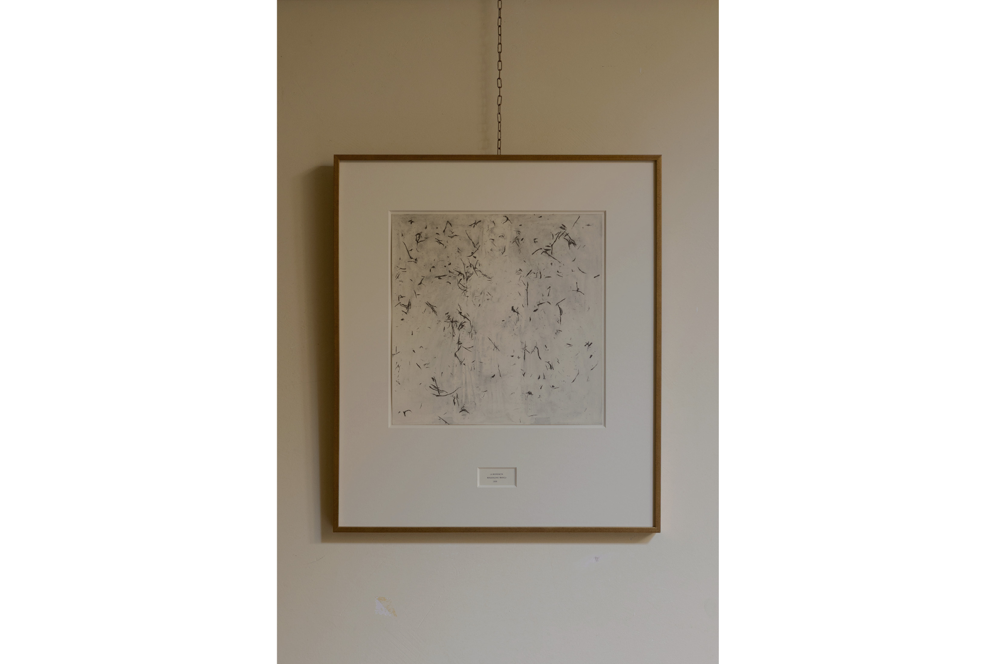 incorniciato, che sembra sia stato dimenticato lì dopo lo smontaggio di qualche mostra passata. La cornice è di ottima fattura e, assieme al disegno in essa contenuto, ricorda, a chi ne ha memoria, l’Erased De Kooning Drawing di Robert Rauschenberg del 1953. È un’opera di Magdalenu Marcu (Magno), forse sarà stata sua la mostra di cui si sono dimenticati di portare via un pezzo.