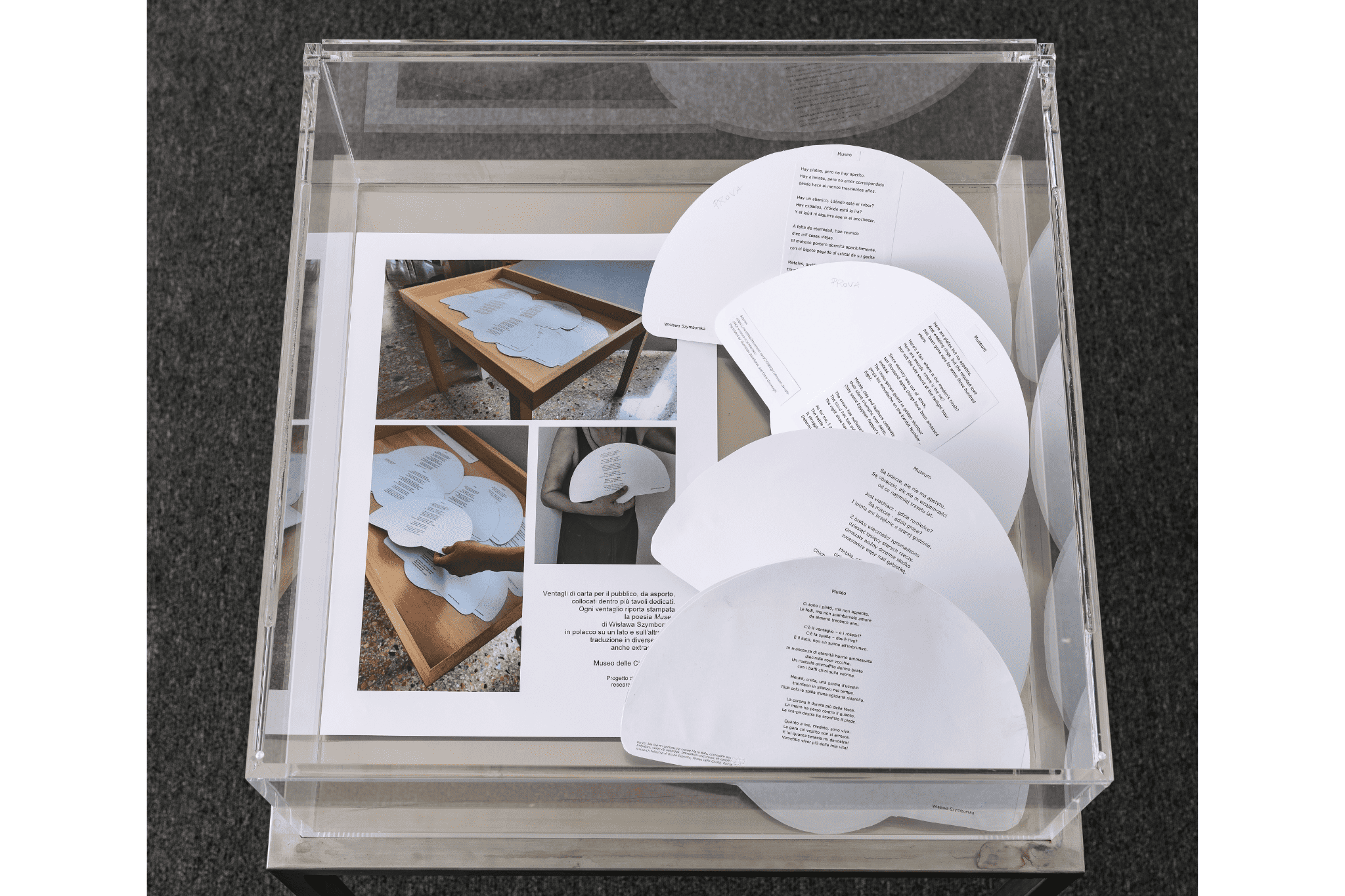 La mostra ruota intorno a 18 progetti che l’artista Bruna Esposito ha concepito nel corso dei 2 anni di ricerca come Research Fellow presso il MUCIV-Museo delle Civiltà. Accostandosi al lavoro quotidiano di conservazione, analisi e racconto dell’istituzione museale, l’artista ha condiviso le sue proposte come possibili ipotesi sul museo e le sue collezioni storiche, ma senza svilupparle in opere vere e proprie per affidarle, invece, alla ulteriore riflessione del museo e dei suoi pubblici.