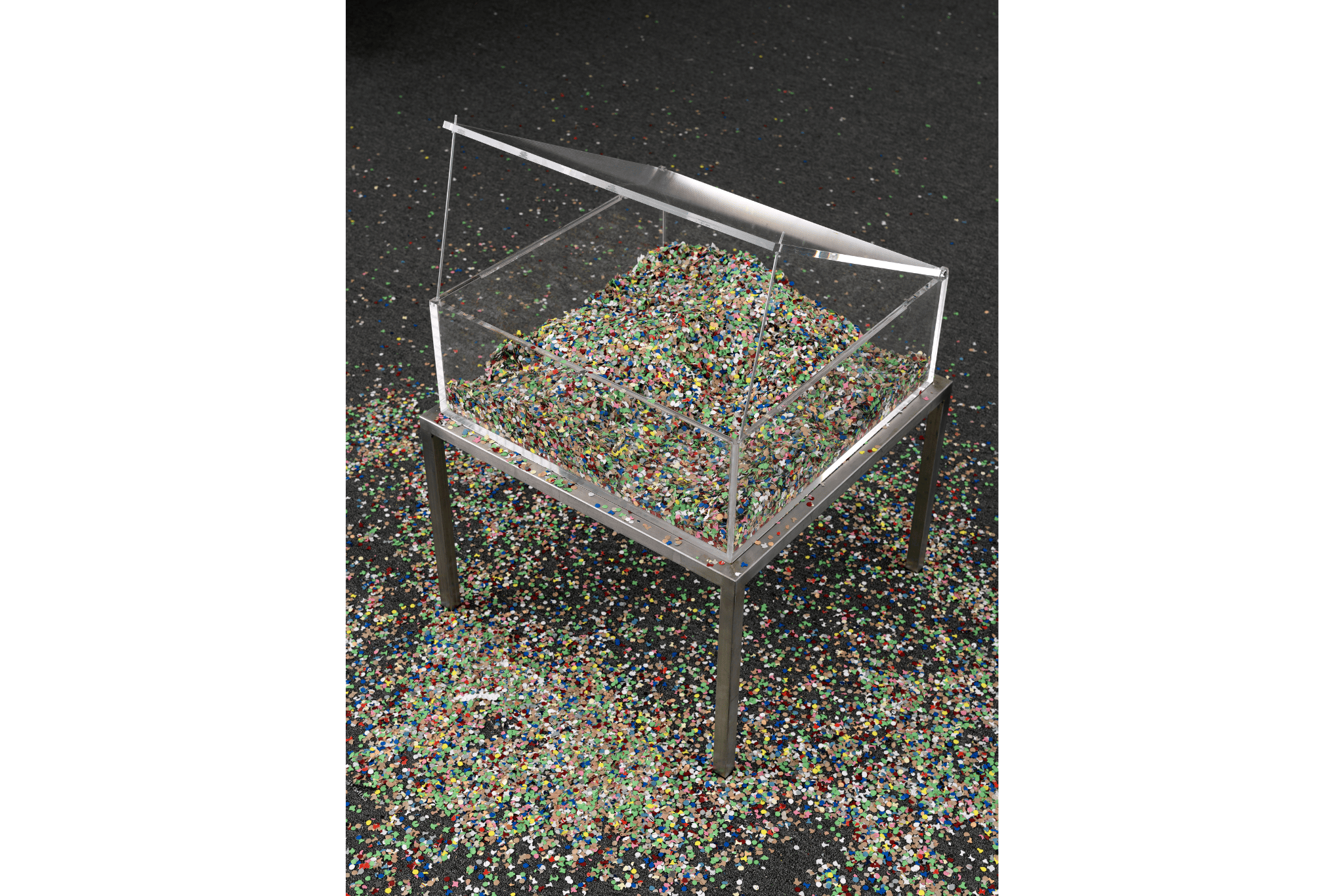 A partire dal titolo della mostra, che evidenzia la coppia paradossale formata da giganti e miniature, l’artista invita a riflettere sulla monumentalità della responsabilità storica e degli edifici architettonici del Museo delle Civiltà – veri e propri giganti realizzati per la mai inaugurata Esposizione Universale di Roma (EUR) del 1942 – divenuti nel corso del tempo custodi di oggetti spesso infinitesimamente piccoli, e in alcuni casi persino immateriali, quasi fossero miniature dei valori e relazioni storiche e culturali di cui essi sono agenti e testimoni. Questo paradosso diventa il punto di vista con il quale interpretare i 18 progetti dell’artista, che riflettono sulle potenzialità ma anche sulle controversie di un museo etnografico-antropologico contemporaneo, con una scala che oscilla tra il macroscopico e il microscopico, il visibile e l’invisibile, il noto e l’ignoto, l’affermato e l’omesso.
