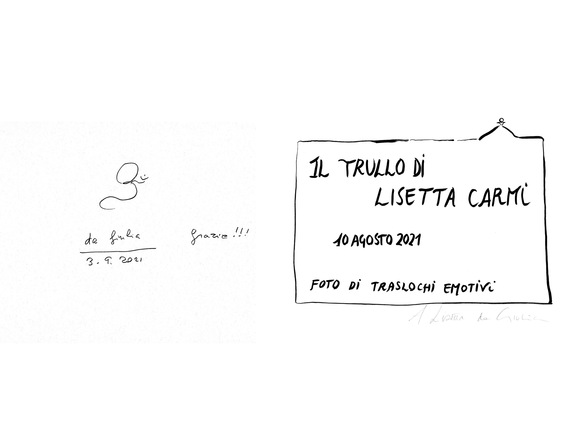 Ho conosciuto Lisetta Carmi nel 2011. Dopo dieci anni di corrispondenza, spremute d’arancia, consigli e vicinanza, il 10 agosto 2021 mi aveva chiesto di fotografare il suo trullo in Puglia. Condivido con voi alcuni scatti dove la sua calligrafia segna i luoghi del cuore. Prendere traccia dei luoghi che abitiamo ci da la possibilità di ricordarne attraversamenti e alleanze possibili. Le affettività e i reincantamenti partono anche da qui. If you move something happens.