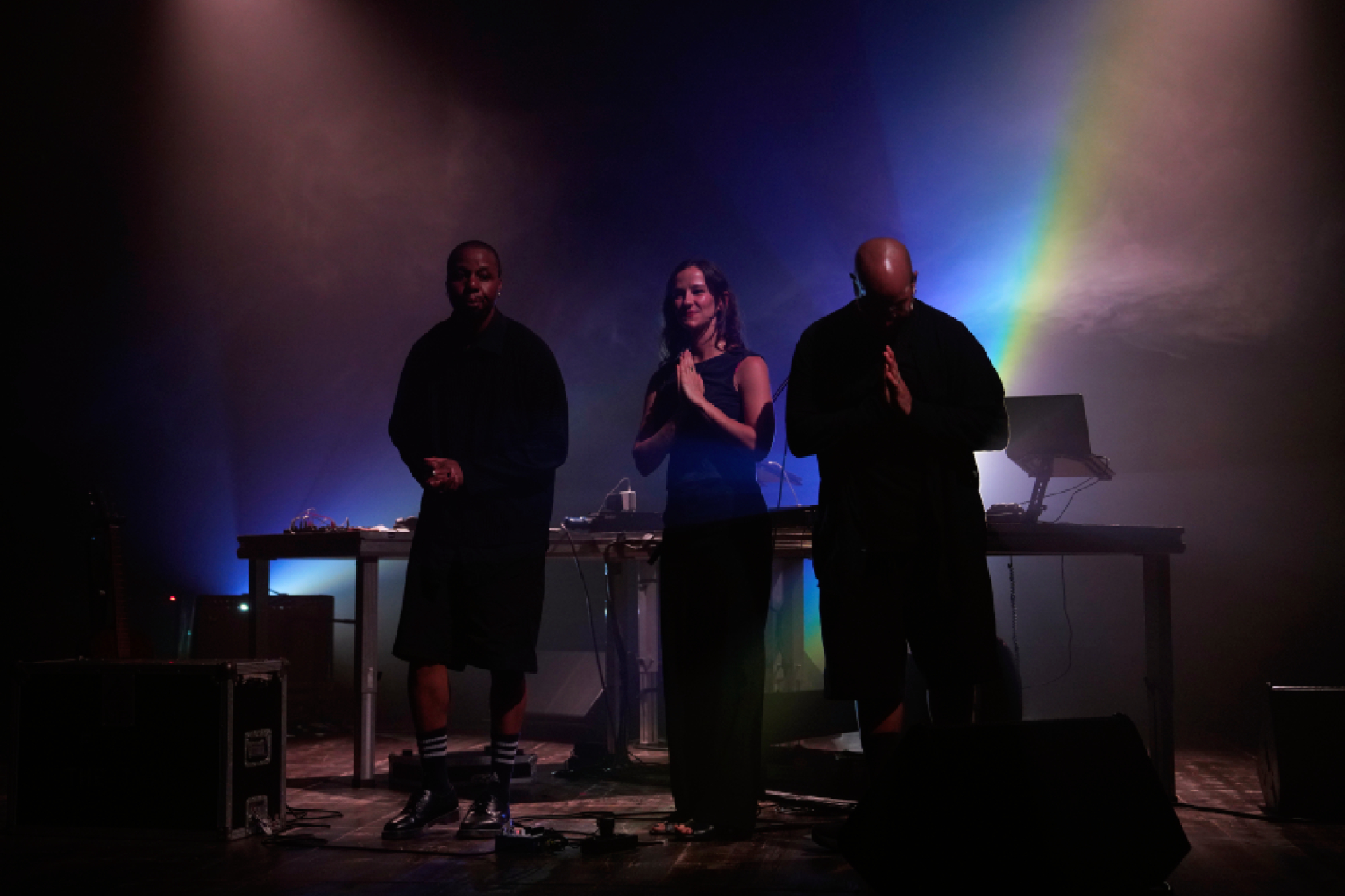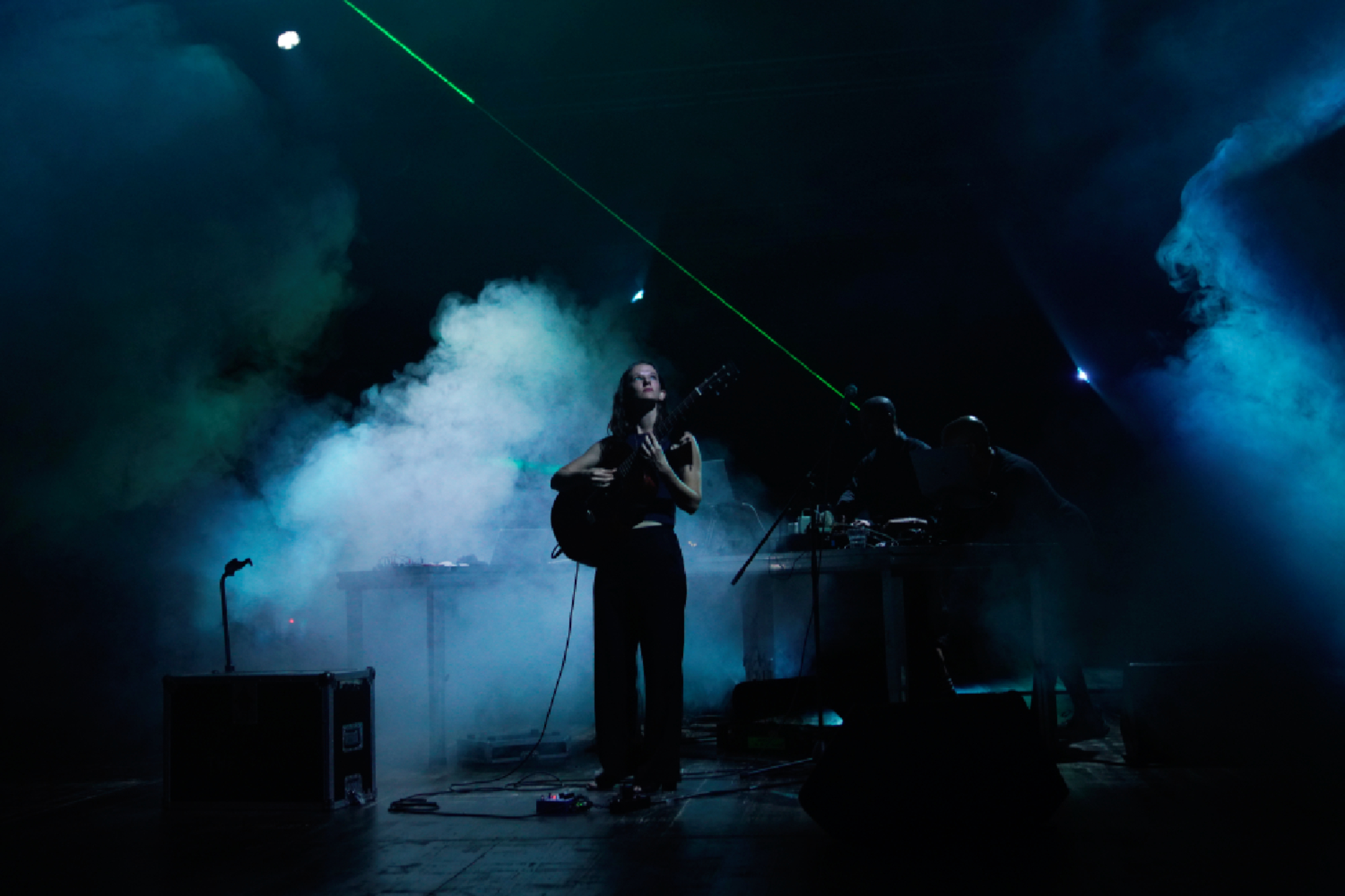 In attesa della performance di chiusura assistiamo a una sorta di sospensione ad alta intensità tra brividi di elettroniche abissali e calde leggerezze acustiche. Si tratta di Last Track di Caterina Barbieri assieme a Space Afrika (con cui collabora dal 2023), con il fondamentale contributo scenografico di MFO & Ruben Spini.