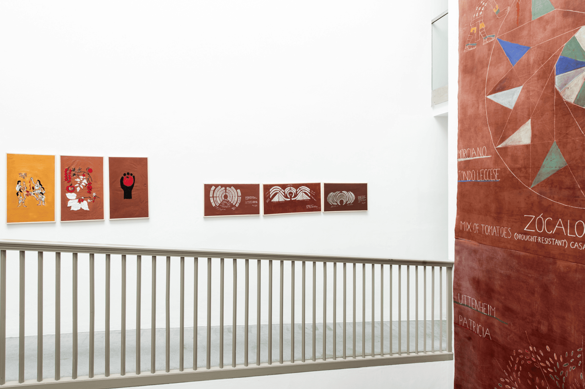 Le acque oceaniche di Amanda Piña (Santiago del Cile, 1984), ricordano le rotte della deportazione schiavista e la deriva delle correnti profonde che fecero scontrare la placca tettonica africana con quella eurasiatica, facendo così sorgere la catena delle Alpi. Sotto c’era il mare, e la grande opera tessile To Bloom () Florecimiento (2024) è un omaggio a un mollusco primordiale che abitava quelle acque senza confine, che qui ritornano come materie latenti, sopravvivenze di un immaginario relazionale. L’acqua, allo stesso tempo elemento lacerato e custode immemore di possibilità, vibra in questa implicita tensione che si ritrova anche nei semi protagonisti di Flows Over Unities (2025), progetto partecipativo dell’artista e agroeconomo Luigi Coppola (Diso, 1972) in collaborazione con BAU — Istituto per l’arte contemporanea e l’ecologia — che celebra le possibilità generative della mescolanza in contrasto con la retorica dell’«autoctono» e in dialogo con la complessità territoriale dell’Alto Adige. Oppure ancora l’installazione ambientale di Alexandra Gelis (Caracas, 1975) AGUA: From River Pulse to Canopy‘s Breath (2025), composta dai due lavori WATER: Encounters from 600 Movements (2019–2024) e Bromeliads – Among the Canopy‘s Breath (2019–2025) in cui lo sguardo segue le diverse strisce di fibra naturale realizzate dall’artista a partire dalla cottura delle bromelie raccolte lungo il fiume Vacilón in Costa Rica, dove Gelis svolge una ricerca sul campo da più di vent’anni. Avvicinandosi a questi tessuti si nota come, nel loro formarsi, abbiano impresso nelle trame le tracce del loro stesso ecosistema fluviale: foglie, insetti, capelli, batteri e altri agenti invisibili che rendono esplicita questa radicale prossimità tra gesto, materiale e territorio.