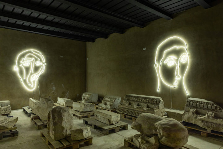 Non a caso Chiara Parisi sceglie la ‘divinizzazione’ come filo rosso della mostra, esplorando un concetto che attraversa epoche e sensibilità diverse: segni di trascendenza di ieri, di oggi e, forse, di domani. Antico e contemporaneo si specchiano l’uno nell’altro, innescando cortocircuiti e connessioni inattese con la storia e con il paesaggio che li circonda.
