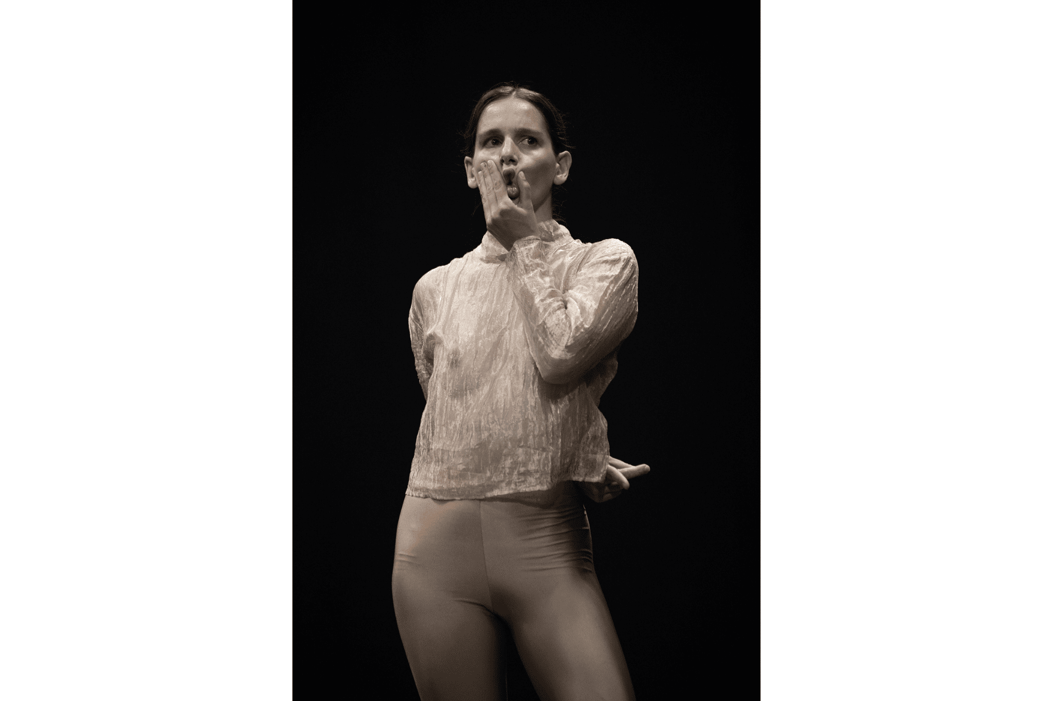 SB: È stato anche un continuo tornare sulle cose. Ripensando alla sfocatura, mi rendo conto che allo stesso tempo, in quel processo, sono emerse presenze molto definite, delle quali a un certo punto non potevamo più fare a meno: incontri, innamoramenti, proiezioni su lavori possibili, immagini singole. Ascoltando questa costellazione di corpi, intensissima e stupenda, ho avuto la sensazione che racchiudesse qualcosa di essenziale. Alcune immagini, da cui non siamo riuscite a staccarci, forse non appariranno in modo nitido nei giorni del festival, ma dentro quella sfocatura e su quello sfondo sono emerse con ancora più forza. A volte non si trattava della totalità di uno spettacolo, ma di un’immagine soltanto: un dettaglio, un riferimento, o persino un’immagine che, parlando con le artiste, quel lavoro ci ha evocato.