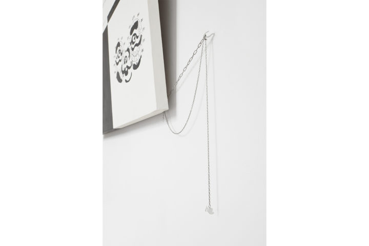 VDZ: I soggetti che si muovono sulla scacchiera presentano una certa rigidità nei movimenti. Queste pedine, nel mio testo, vengono sconvolte dall’arrivo delle frecce: «Those little arrows I invented in my mind don’t ignore each other. They align or they are lying?» Le frecce sono pensieri che introducono il caos, dilatando i tempi del gioco. Porgono domande, scuotono e fanno vacillare. L’alfiere e la sella non giocano più le loro mosse, vengono interrogati da frecce di pensiero che portano a contraddirsi. Alla fine del testo emerge l’accettazione della contraddizione: un’analisi insieme personale e cosmica. Guardando all’etimologia di Chaos si vede come dallo spazio vuoto e abissale provenga la possibilità di ogni cosa. In origine significava apertura e creazione, solo in seguito è diventato sinonimo di disordine. Il mio modo di intendere questa partita, che poi è la vita stessa, va oltre l’idea capitalistica che vede il tempo come qualcosa da sfruttare al massimo. Il caos apre infinite possibilità, seguendo le emozioni. Questo è il sotto-testo di tutta la mostra, che ripropone una partita a scacchi quasi surreale. Alfiere e sella differiscono per colore dal dualismo bianco-nero del pavimento e della tela: sono entrambi argento, rimangono in una zona grigia, non si sfidano. Il film di Bergman è stato per me una grande fonte di ispirazione. Mi ha fatto riflettere sulla morte, sul lasciare andare. Il film procede grazie al procrastinarsi della morte del cavaliere. Questo mi ha fatto pensare alla possibilità di dimenticare e di lasciare andare. Con Bergman più il personaggio sopravvive più la storia continua.