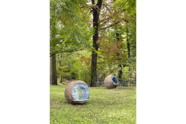 Nell’approcciare il giardino come spazio espositivo d’eccezione, l’artista ha realizzato cinque interventi dislocati in punti diversi del parco, lungo un percorso che lo attraversa nella sua interezza.