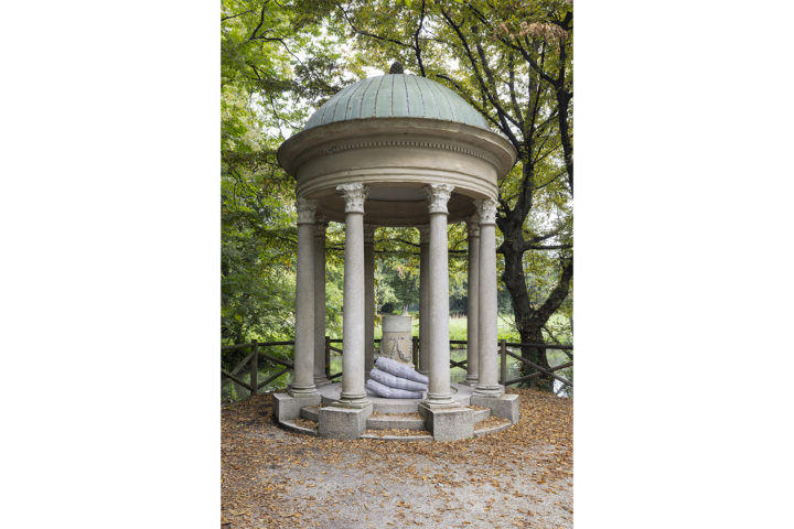 Nei giardini storici, come quello di Villa Reale, la componente architettonica gioca un ruolo essenziale nel definire l’identità dello spazio. Padiglioni, tempietti, ponti e sculture si fondono con la vegetazione, costruendo una narrazione visiva e simbolica, studiata per evocare suggestioni e accompagnare il visitatore in un itinerario di scoperta. Questa compresenza di natura e architettura ha guidato Enrico nell’articolazione del percorso espositivo, che si snoda all’interno del giardino seguendo le sue linee architettoniche, pieni e vuoti, verticalità e orizzontalità, ritmo naturale e costruito.