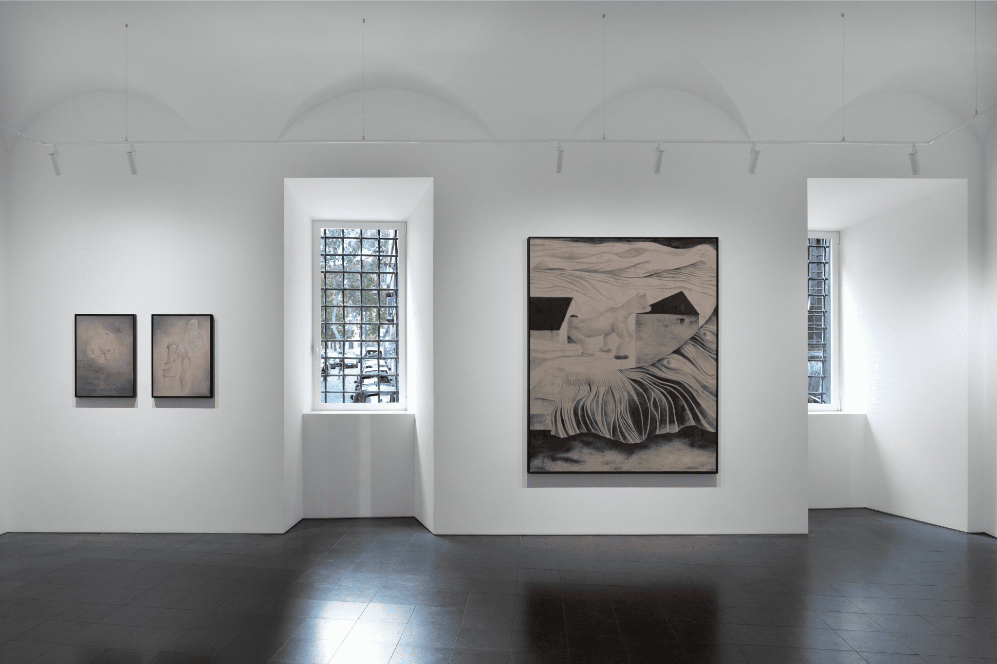 C’è una deliberata scivolosità in queste scene: appaiono narrative, ma resistono a una chiara interpretazione, come se stessimo assistendo solo a frammenti di una storia il cui inizio e la cui fine rimangono appena fuori portata. Tenendo lo spettatore sospeso tra intimità e straniamento, familiarità e alienazione, Tyfus ci invita non a decodificare, ma ad abitare questi momenti dipinti, lasciando che il