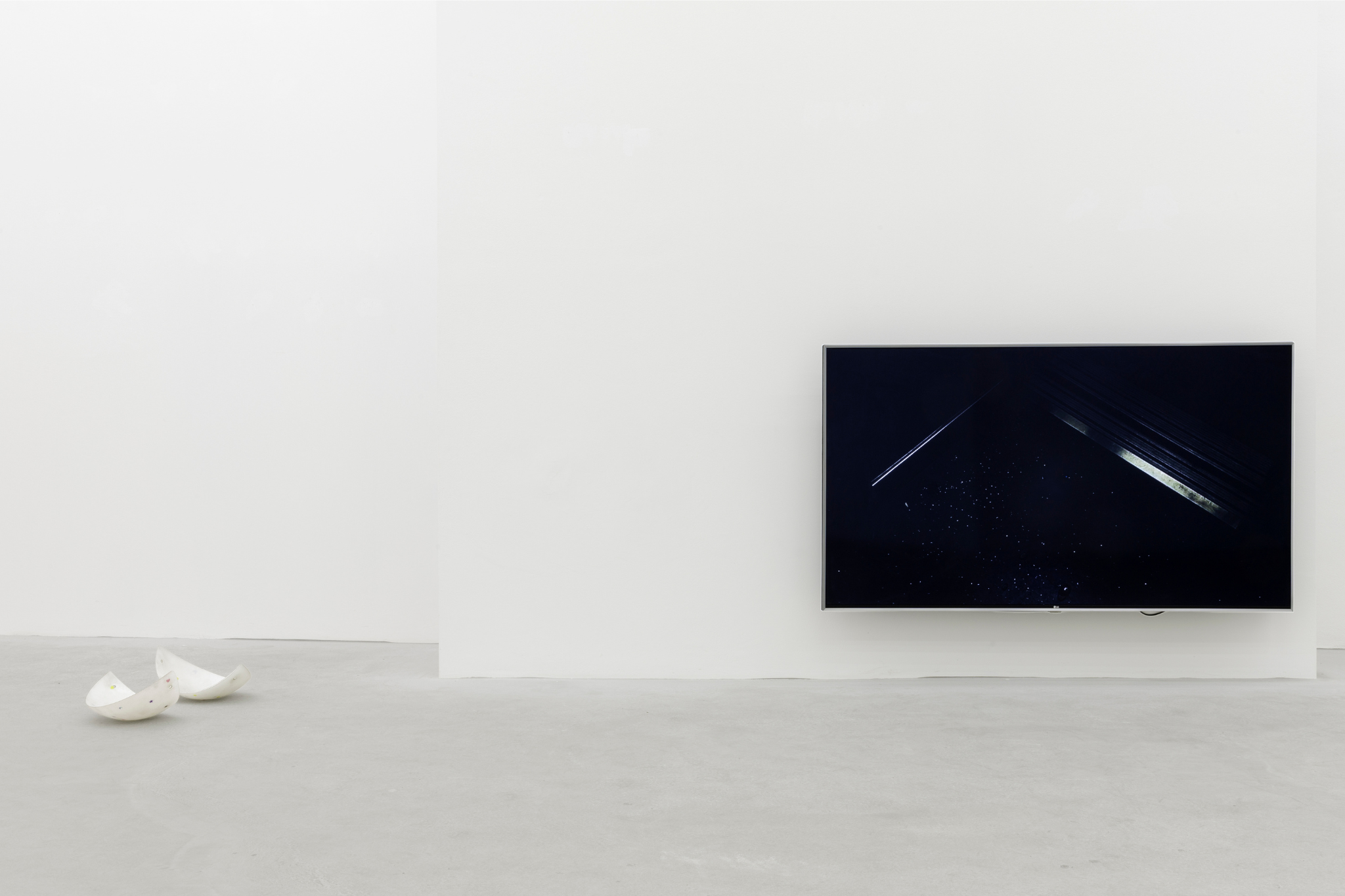 Questo invito a riscoprire il familiare prosegue in “Bomboniera.” In Untitled (elevator) (2025), un loop di due minuti e cinquantadue secondi, l’artista filma il pavimento di un ascensore nella metropolitana di Porta Garibaldi a Milano. La luce difettosa, accentuata dalla luminosità abbassata del telefono, trasforma il pavimento in un cielo stellato. Invece di un semplice spazio di passaggio, l’ascensore diventa un piccolo universo in movimento, composto di luci e ombre, un frammento di galassia nascosto nella routine di ogni giorno.