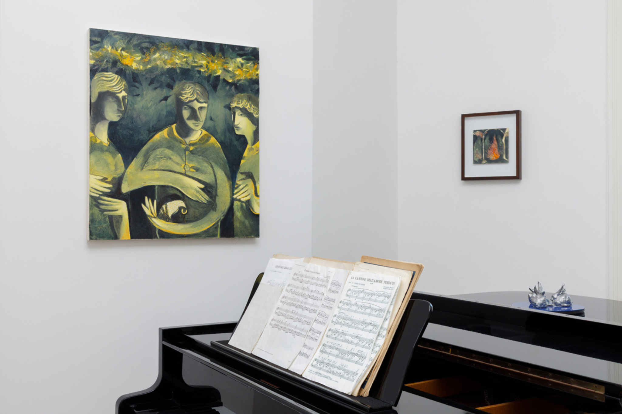Ceccherini non cerca una narrazione lineare, ma la forza di un’impressione: un paesaggio interiore e condiviso, capace di evocare più che di raccontare. La sua pittura, densa e fumosa, amalgama figure e scenari in immagini quasi mitiche, illuminate da bagliori fluorescenti e tonalità cupe, come un racconto popolare sospeso tra fiaba e mistero. Le opere non offrono una lettura univoca, ma invitano lo spettatore a un’osservazione ravvicinata, alla scoperta lenta dei dettagli, dove riaffiorano segni e simboli di matrice medievale.