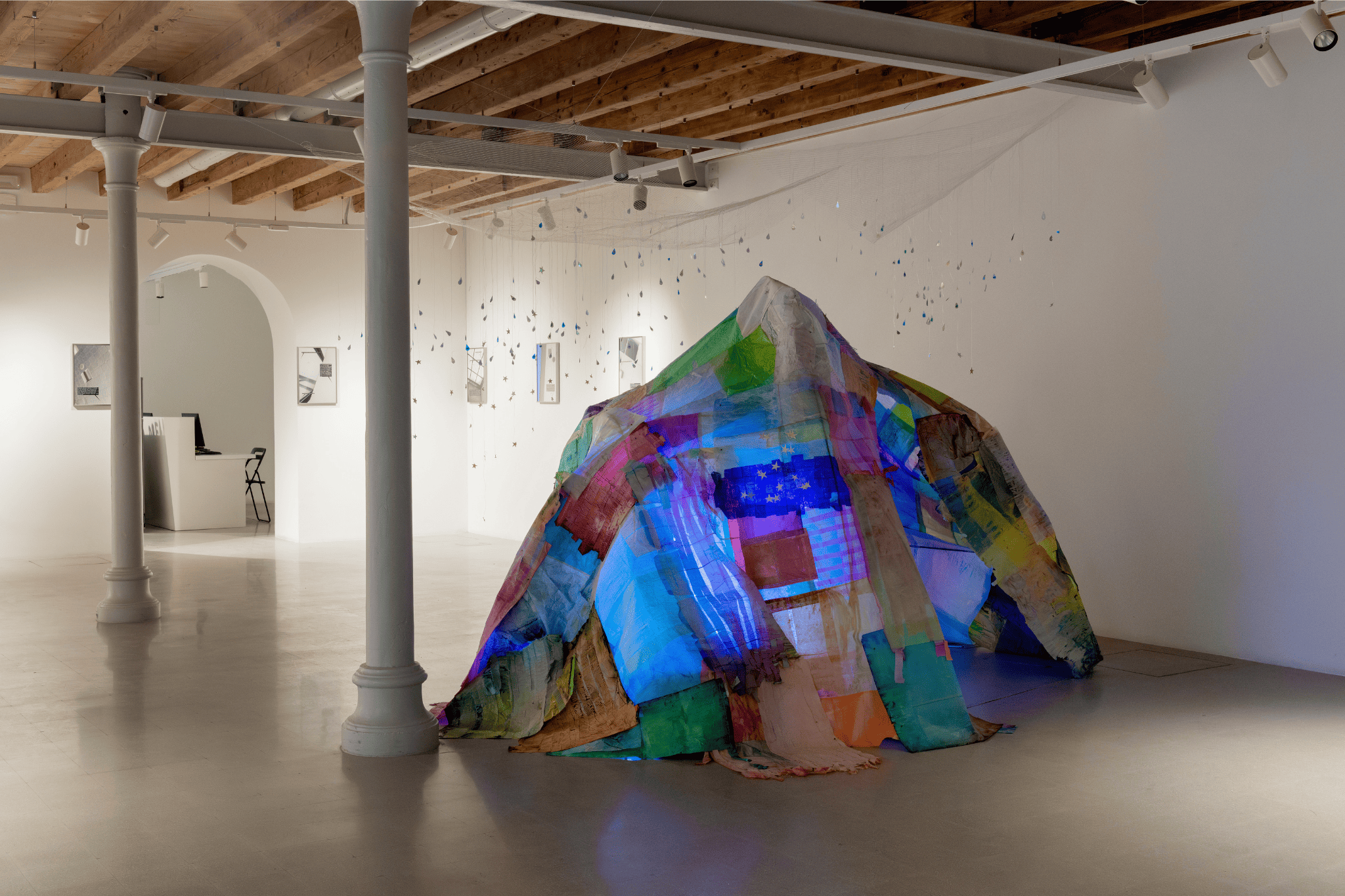 Il titolo della mostra “They sold us a dream then took away our sleep” riprende una frase tracciata dall’artista Danilo Correale su un office divider dismesso, oggetto che inaugura il percorso espositivo: una traccia poetica, un gesto di denuncia dell’etica del lavoro che ha dominato gli ultimi trent’anni delle nostre vite.