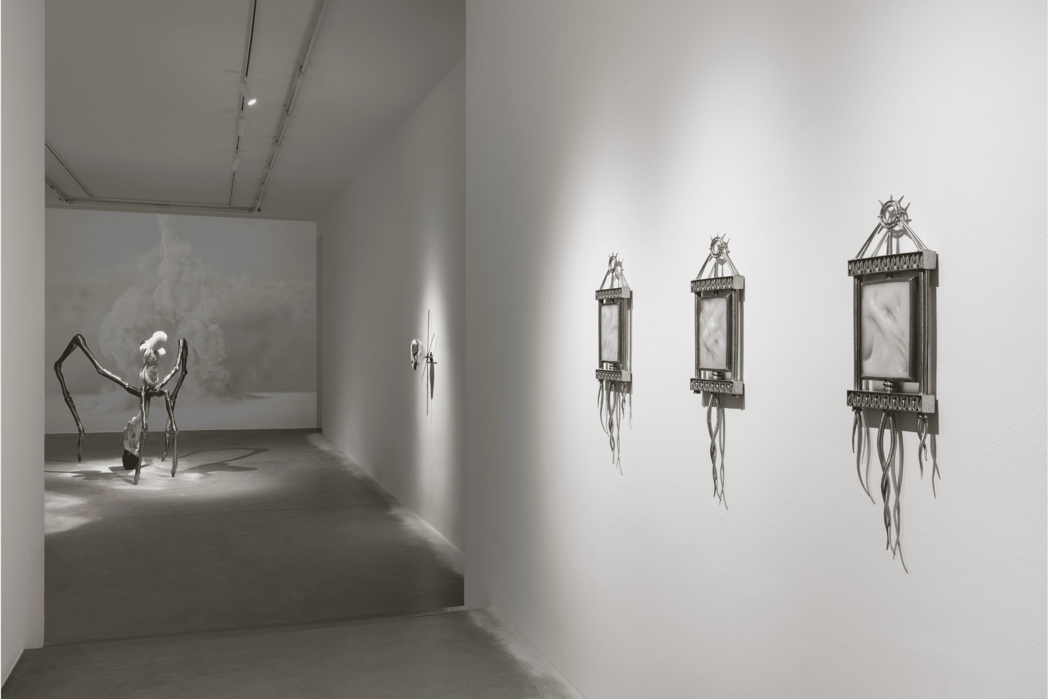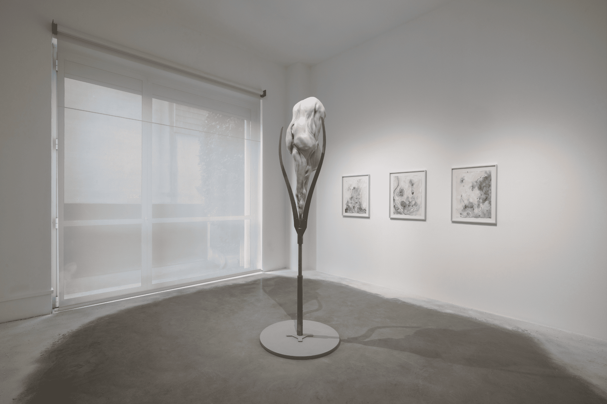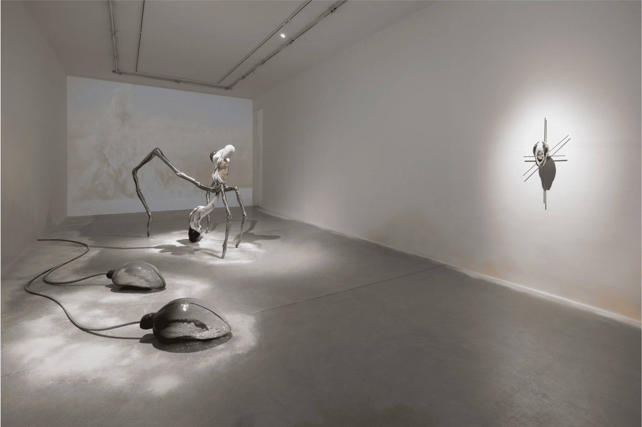 Entità perturbanti, soggettività trasversali. Figure non radicate, le cui deformazioni testimoniano una liberazione dalla realtà materiale. Organismi apparentemente vulnerabili sprigionano una tensione amorfa, una condizione primordiale, eterna. Una danza silenziosa che alterna violenza e fragilità, un processo metamorfico di evasione fisica e mentale.