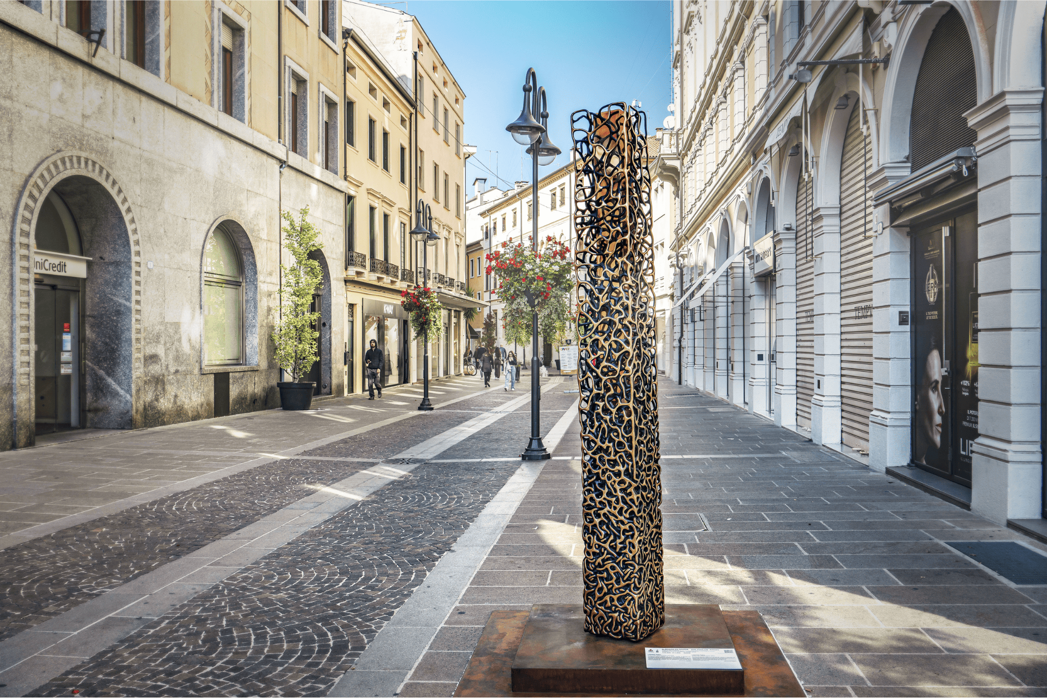 La mostra padovana, che propone un itinerario comprensivo di 14 sculture monumentali, allestite tra il centro della città e la periferia, non è solo un viaggio tra le sculture, ma un invito alla riflessione: su cosa scegliamo di tradire e verso cosa decidiamo di rimanere fedeli. Meggiato propone l’arte come atto di resistenza e coerenza, come investimento non solo economico ma spirituale e culturale.
