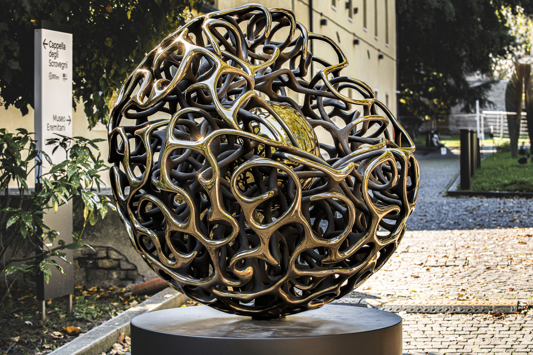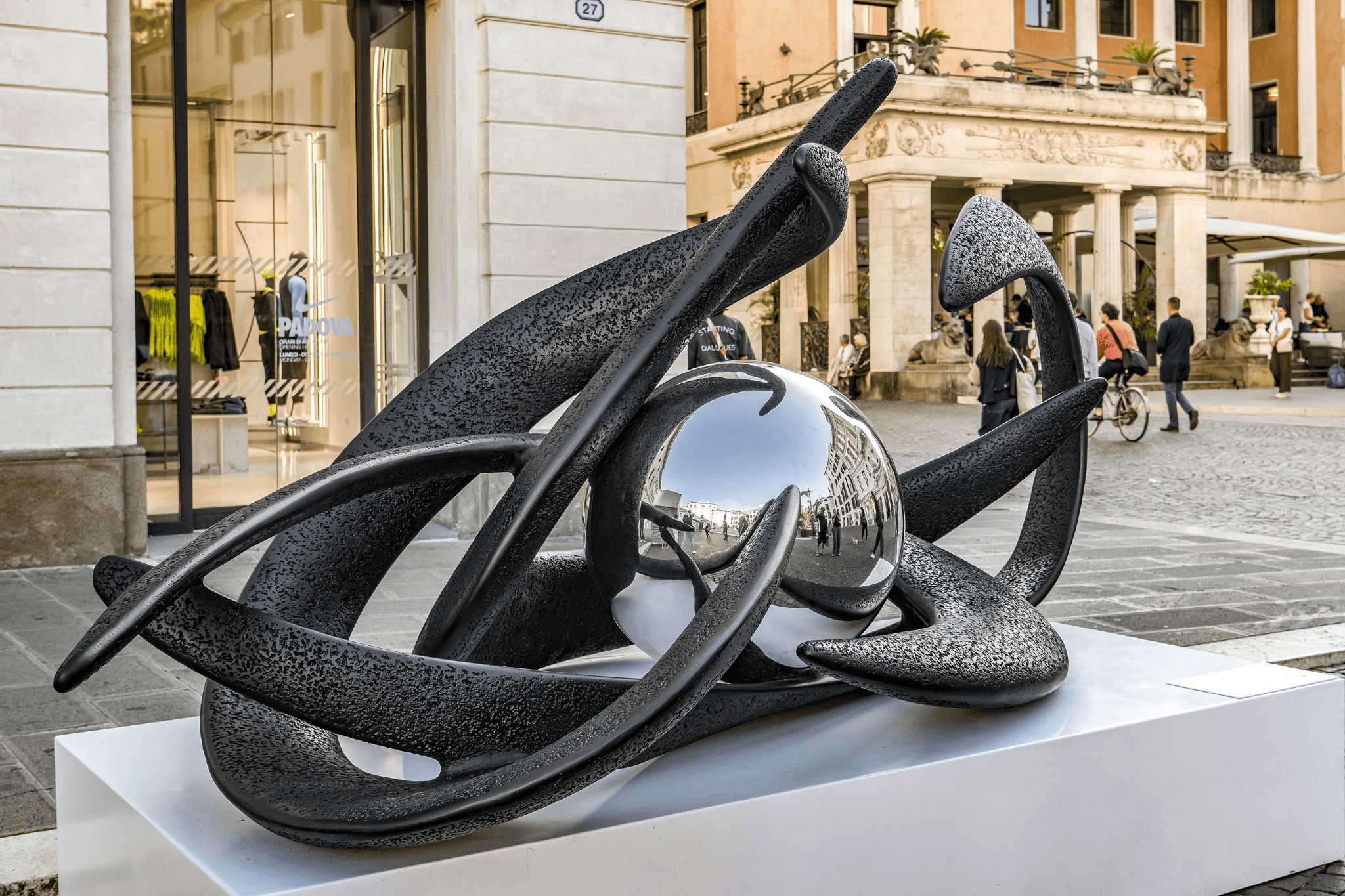 Gianfranco Meggiato, uno degli scultori italiani più riconosciuti a livello internazionale, porta nel cuore di Padova quattordici opere monumentali in dialogo aperto con i cittadini e con il patrimonio culturale. “Il Bacio di Giuda” è il tema centrale dell’operazione dell’artista. Un’icona di inganno e disillusione che Meggiato rilegge con la sua cifra inconfondibile, trasformando il metallo in un vortice di forme che catturano e riflettono la coscienza collettiva.