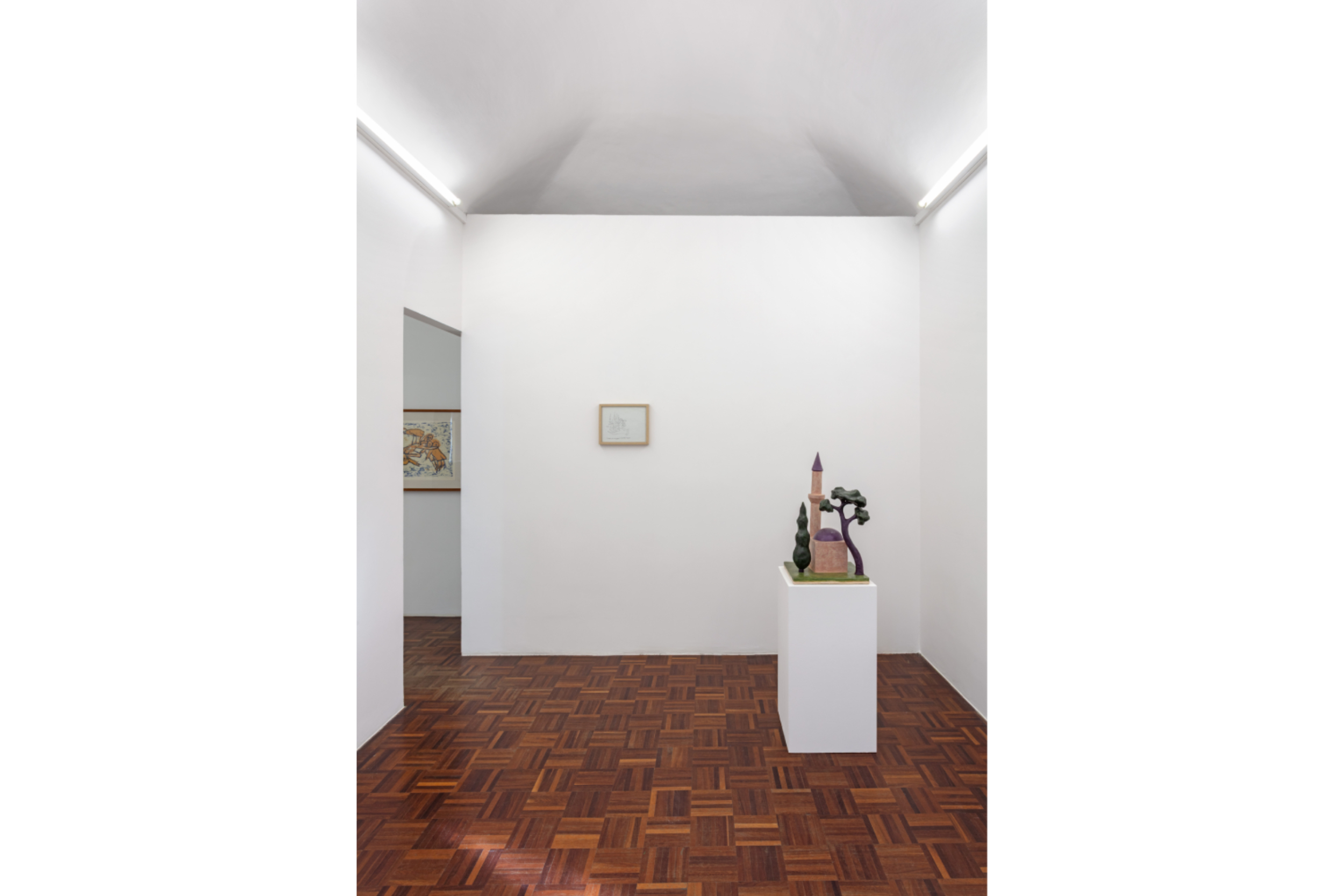 La mostra prende la forma di un sodalizio anacronistico dove ogni linea è un segno talmente veloce che nell’istante in cui si osserva è già svanito. Come Untitled (1970-70) di Alessio – nome di un artista inesistente creato da Alighiero Boetti e Salvo – un giocattolo composto da una faccia-pupazzo con le ruote, un esempio di mirabilia, un’enciclopedia della meraviglia: una proto-letteratura del fantastico presentata come se fosse reale.