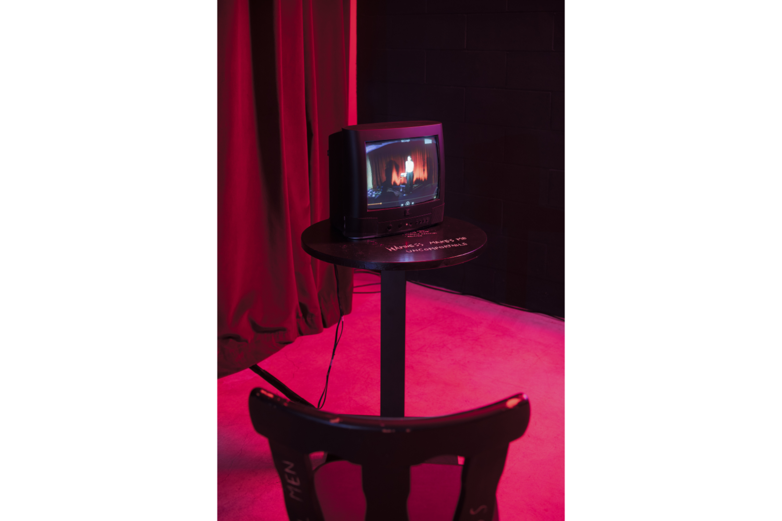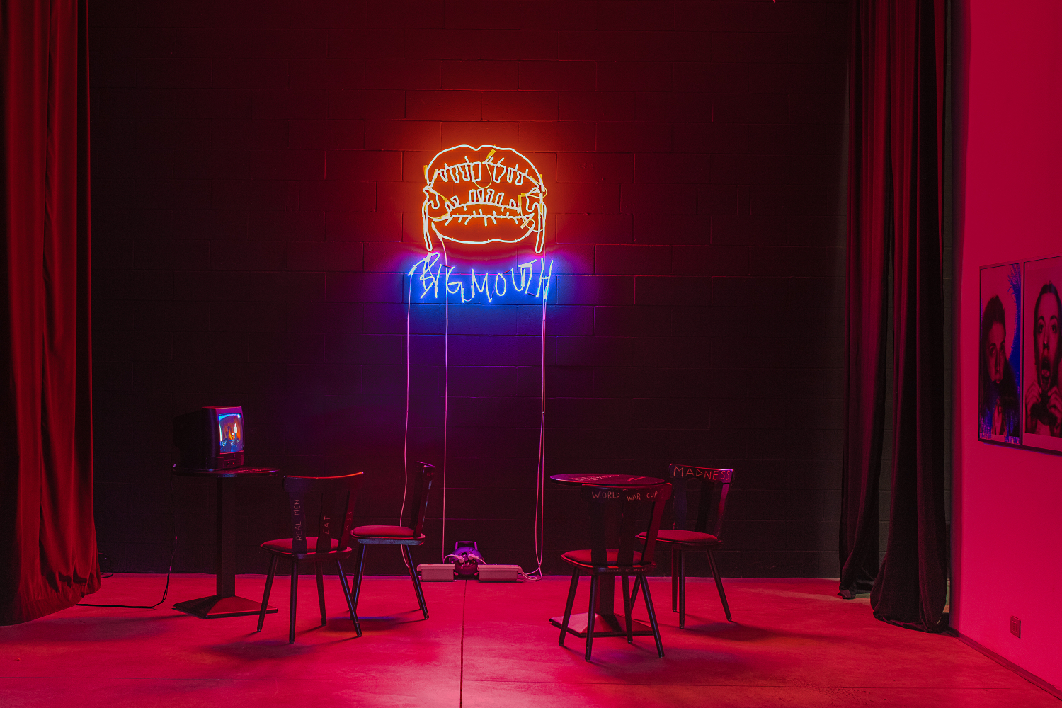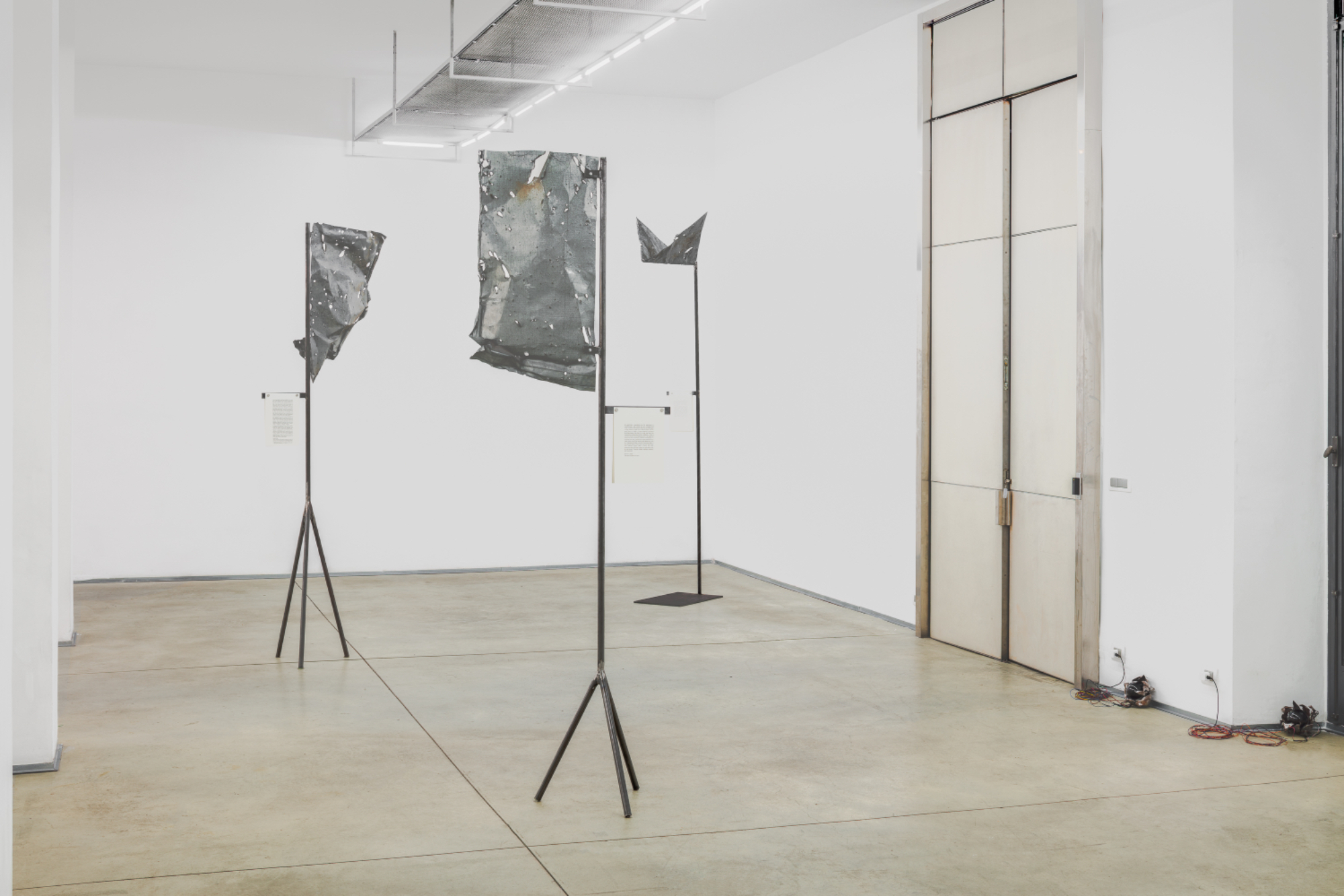 ex caldo. caldo freddo. atmosfera post traumatica desaturata. è un tutto stanco ma teso. poche punte di colore. solo botte sanguigne e cose ossidate. eco di uno spettacolo avvenuto in loco o forse altrove. riguarda tutto qualcosa che stanno ricordando cioè qualcosa che vogliono dimenticare. lo svantaggio è che quando un ricordo esce dalla sua dimensione privata mostra il fianco di chi lo racconta. neon. neon come un fuoco rosso da guardare per scaldarsi. sbornia di gruppo come rito per raccontarsi una vittoria. il problema del budget. la lama del budget o il suo passepartout. che è il tuo passepartout. c’è un video in cui qualcuno balla in divisa. conferma che i cappelli troppo grandi rendono i militari puerili. legami apparentemente indissolubili con ciò che si considera colpevole e in risposta il distacco che rende colpevole chi lo attua. scuole inglesi. una certa intelligenza sociale internazionalista che ricorda molto la furbizia e che non è la loro intelligenza di partenza. stanza nera. invecchiamento della bandiera. paralisi della bandiera. prelievo diagnosi e prognosi, travaso. trascrizione. trascrizione del sogno come una modifica inappellabile. sparare una sentenza su un morto che non si può ribellare. a lungo andare tutto cambia nome anche le città. – figurarsi come muta un amore o l’opinione che si ha di un padre – frutti. frutti immangiabili in vetro. serie di uova luminose tutte quasi uguali che si susseguono. disegno. linguaggio. linguaggio come texture e discorso sopra al mondo. abbraccio come macchia indelebile. anche i nomi si toccano e si plagiano a vicenda. luce intermittente. fiore offerto in protezione che invade, o forse sono piante con un cuore-frutto, con dentro quello che pare essere un ago. – in grecia qualcuno è diventato famoso dando la sua musica ai tassisti che la fanno sempre ascoltare ai passeggeri – dentro il magazzino hanno un’altra di quelle bandiere d’acciaio ma non l’hanno appesa. compilation. musica disco armena. ti portano in giro in una macchina di lusso ma vecchia e la tua autosuggestione trasforma tutto in un film.