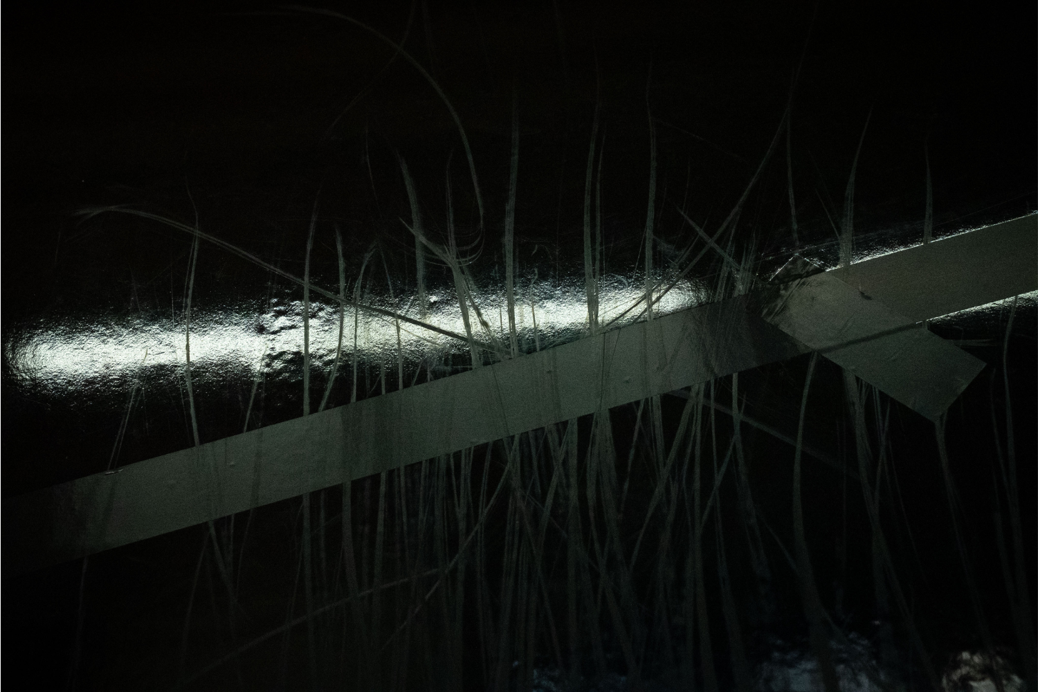Vorrei essere come le due tele sospese nel salottino delle signore di Villa Maraini, sede romana dell’Istituto Svizzero in cui si svolge “how we always survived” – prima personale italiana di Pauline Boudry / Renate Lorenz (attive come duo dal 2007), a cura di Lucrezia Calabrò Visconti –, nascoste e annullate dalle parrucche artificiali corvine che le ricoprono (Wig Pieces, 2025). Vorrei potermi esimere dall’ascolto degli elementi principali della mostra – il suono, il ritmo, la musica – perché temo la capacità del viaggio involontario che portano con sé. Mentre scrivo, infatti, una porzione del passato continua a far capolino: un volto allo specchio, in un bagno di un locale di periferia. Saranno sicuramente passate le due di notte. Quel volto si vede stanco e segnato. Di sottofondo si sente la musica, soffocata e attutita. Di tanto in tanto si fa più distinta, nel tempo limitato dall’apertura e dalla chiusura della porta di chi entra, di chi esce, di chi, a differenza mia, si specchia ma non vede gli anni che scorrono ma solo l’attimo da afferrare.