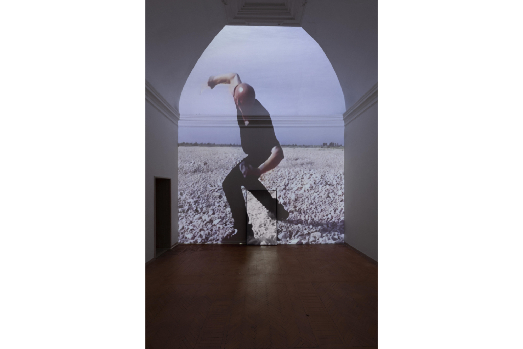 Varcare la soglia del civico 9 di via Gregoriana a Roma, per i visitatori della mostra “Chi esce entra” curata da Simon Würsten Marin per la Biblioteca Hertziana – Max Planck Institute for Art History, è stato letteralmente un cammino a ritroso nel tempo. Il titolo della mostra, tratto da un’opera del 1971 di Vincenzo Agnetti (esposta insieme alla sua controparte, Chi entra esce), aggiunge enfasi all’azione dell’entrare in uno spazio altro. Il corridoio che connette il portone alla scala verso la sala principale sottostante è tinto di una luce color del fuoco, che rimanda alla possibile causa della chiusura dell’ultima destinazione d’uso di questi locali – La Cage aux folles, club degli anni ottanta attivo sino al 1997 – quando un incendio ne determinò il suo epilogo. Tracce di quell’ardore finale rimangono sulle porzioni annerite e decadenti del corridoio d’entrata mentre un audio sordo e cupo accompagna i nostri passi: si tratta (luce e sonoro) di una rielaborazione di Man Dog del 2020 dell’artista inglese Prem Sahib. Scese le scale, resti di pareti in cartongesso e di pitture al muro sono resi ancor più evocativi dalle parole del curatore che ci accompagna e accenna a un ulteriore, precedente funzione del luogo, sempre legata alla danza e allo svago, una sala da ballo (dal 1939). Qui ho la prima dipartita epifanica. A pochi metri da lì, in via Francesco Crispi, la sede romana di Gagosian e la sotterranea Fondazione Nicola Del Roscio contengono il tempo di quello che fu il Teatro Florida, dal 1926 dedito a spettacoli di varietà e in seguito a sala da ballo. Mi ritrovo a pensare quindi agli anni del Fascismo e alla vita notturna dell’epoca, così diversa dall’oggi di un centro che i romani non vivono più. Vengo di conseguenza portata a immaginare le demolizioni di Mussolini per via dei Fori Imperiali con le sue distruzioni di vite, storie, e monumenti, tra cui la sede dell’Accademia di San Luca che dai Fori si trasferisce nell’attuale Palazzo Carpegna. Qui, nei locali al pianterreno, è allestita la personale di Daniele Puppi dal titolo “Eh, lampu!”, costituita da quattro videoinstallazioni dal forte impatto scultoreo. La prima, The Chain (2019), inserita di traverso in ingresso, manda in loop alcuni secondi di una scena di Tom & Jerry facendomi sentire sulla pelle la spirale temporale in cui sembra io sia intrappolata. Dal loop vengo di colpo scagliata, grazie a Il Lancio del Sasso (1995/2025) – opera storica di Puppi qui riproposta – a un altro momento di cambiamento urbanistico della città, la lottizzazione di villa Ludovisi e la costruzione del villino Maraini, gioiello di eclettismo architettonico di inizio Novecento. Sede romana dell’Istituto Svizzero, la villa ospita “how we always survived” di Pauline Boudry / Renate Lorenz che in qualche modo sembra sottolineare il cuore significante di questo viaggio a ritroso, in cui la musica e il movimento equivalgono a forme di resistenza e libertà. Ritorno quindi a via Gregoriana 9 e all’opera che più nostalgicamente parla di altri luoghi di incontro in via di estinzione, in questo caso nel Regno Unito: il video In My Room (2020) di Hannah Quinlan & Rosie Hastings. Immersa nel cuore pulsante dell’ex-sala da ballo/club, alzo lo sguardo e mi soffermo a osservare il lucernario. Un tempo qui c’era un cortile aperto che venne chiuso da Ludovico Spiridon per aprirvi, nel 1911, la sua galleria d’arte. Questa data è più potente del lampo a cui si riferisce Puppi. In un sol battito mi ritrovo a superare Villa Borghese e a immaginarmi la costruzione del Palazzo delle Belle Arti (poi Galleria Nazionale d’Arte Moderna) per ospitare l’Esposizione Internazionale di Belle Arti in occasione del cinquantenario dell’Unità d’Italia e la trasformazione dell’intera area, Valle Giulia, che prende il nome da papa Giulio III che qui aveva la sua residenza estiva, capolavoro rinascimentale e sede odierna del Museo Nazionale Etrusco. Nel suo cortile, abbracciata dai porticati, campeggia la parola POESIA capovolta, in luce al neon bianca, scritta con una grafia che oramai riconosciamo, quella di Marcello Maloberti. Questa installazione luminosa è accompagnata da un libro dalla copertina in tela turchese che uso come se fosse un piccolo oracolo poetico a stampa. Lo apro ora, per voi, e leggo: “La voce delle mani è la scrittura”. Le mie mani, qui, non hanno fatto altro che seguire le fonti di luce che hanno illuminato scorci di storia, attraverso echi di musiche e danze, a sublimare dolori e lacerazioni.