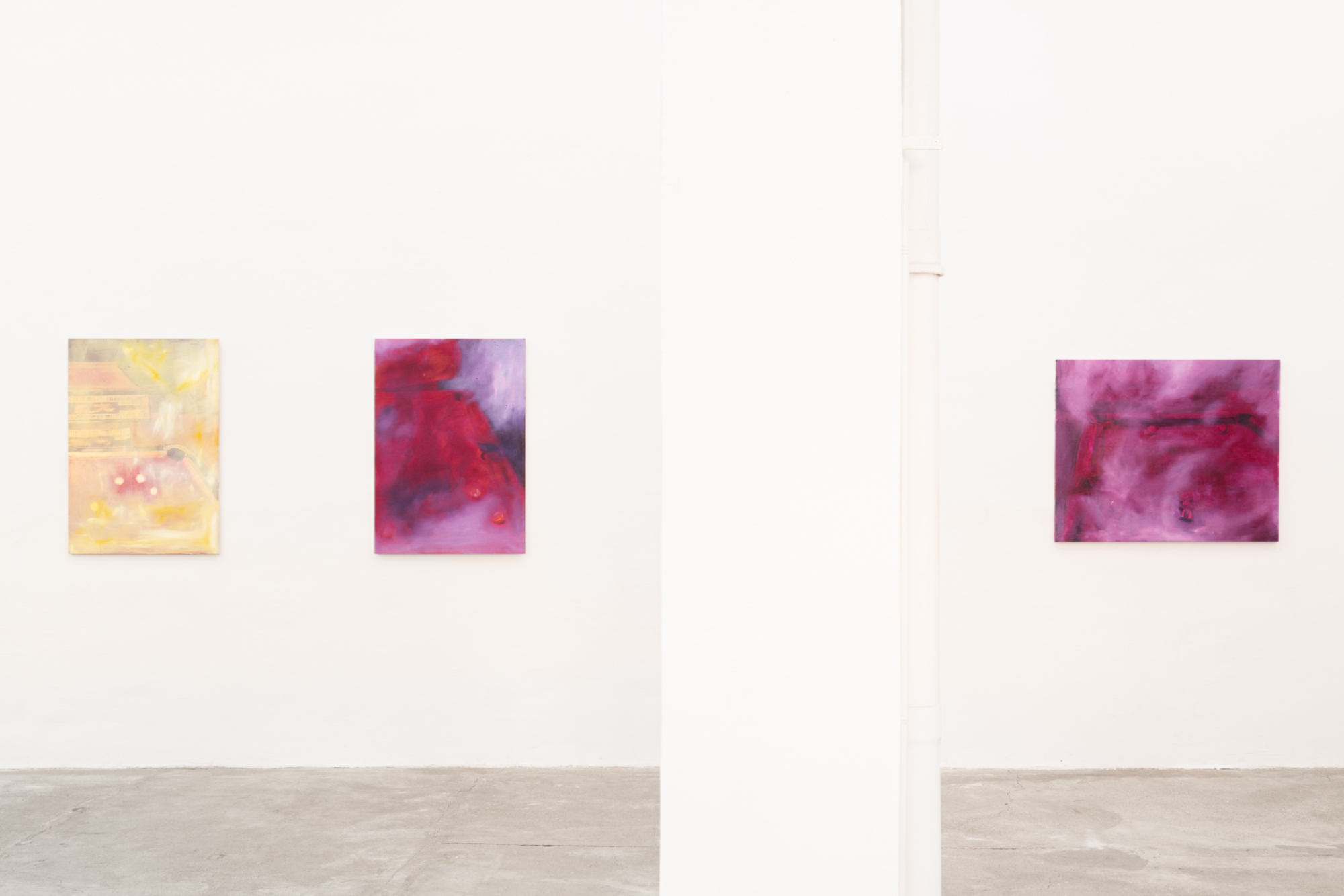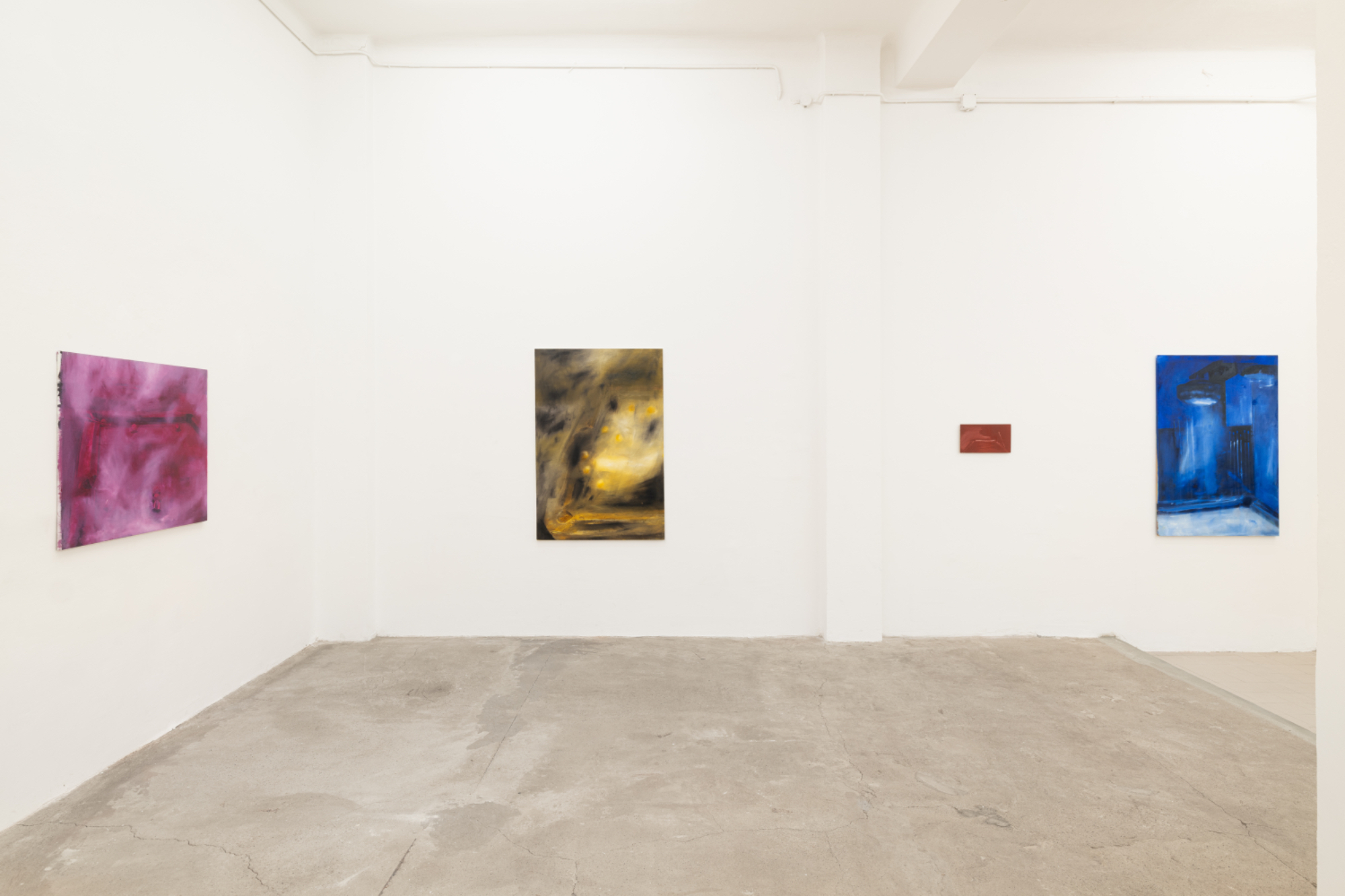 Difatti, «la pittura è la giusta conseguenza» scrive l’artista nel testo che accompagna la mostra, quasi a ribadire come quei dipinti altro non sono che il modo più naturale attraverso il quale restituire quelle sensazioni, quelle atmosfere, affidandole alla tela con ampie e avvolgenti campiture di colore senza un disegno preparatorio, senza uno schema, anzi trasformando lo stato dei suoi ricordi direttamente in colore vivo.