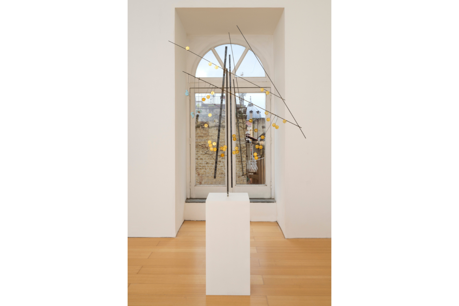 Un ingresso pacificato in cui il rituale dell’esordio è volontariamente non rispettato e la melodia che accoglie funziona come leitmotiv che (de)struttura il percorso espositivo, introducendo in medias res a una pratica in cui linguaggio, gesto e oggetti sono declinati come frasi musicali invece che come segni stabili, producendo un’ipotesi di libertà dalle procedure di esclusione della società.