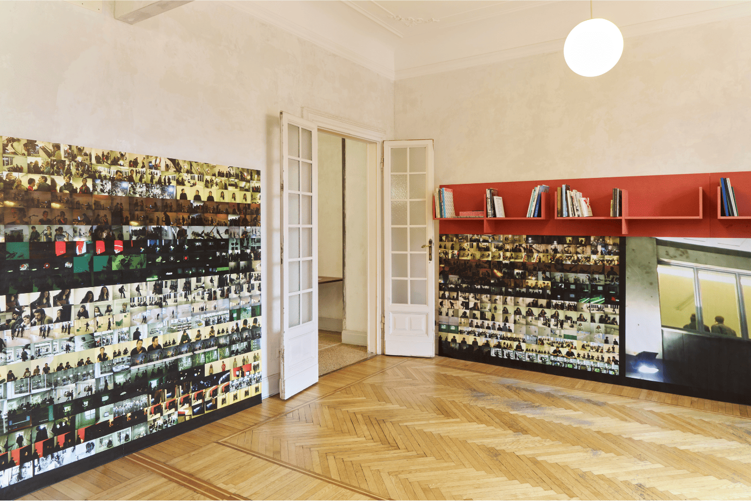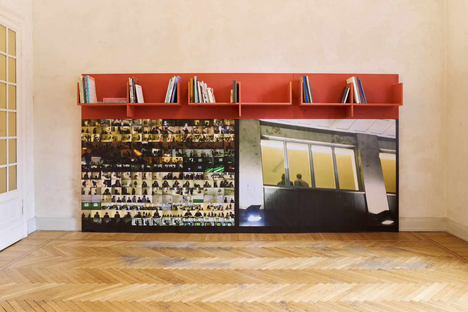 A sintetizzare le sette serate documentate nel materiale video, una timeline esposta alle pareti che, da un lato, funziona come uno storyboard, una mappa che permette di orientarsi tra i diversi momenti registrati; dall’altro evidenzia la distanza tra la struttura cronologica degli eventi e la forma molto più fluida e irregolare del film.