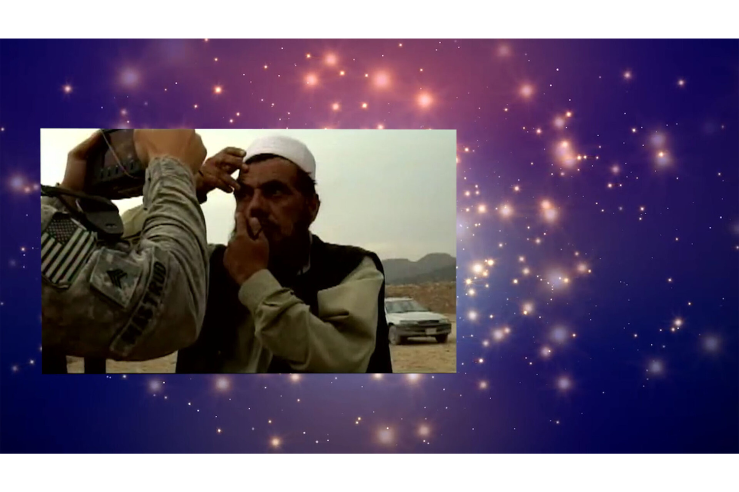 Subito dopo ci aspetta una reliquia, una materia che contiene un tempo troppo intenso per essere definita, perché in questo braciere c’è anche la cenere che ci tiene vive e sveglie di fronte alla morte, prefiche astanti e portavoce, lì testarde a mantenere vivi i desideri di un altro. La materia che tiene insieme la storia tutta, nel fiato che toglie, è la copia de Le mille e una notte appartenuta al poeta palestinese Wael Zuaiter, ucciso a Roma dal Mossad il 16 ottobre 1972. Come i dipinti di Mattar e Al-Hawajri anche questo libro è sopravvissuto all’arma da fuoco, alla distruzione artificiale, è rimasto a raccontare, a testimoniare che Wael Zuaiter voleva tradurre il libro dall’arabo all’italiano, intenzione rimasta finora incompiuta. Allora Emily Jacir, con Material for a Film (2005–in corso, lavoro da cui è tratto il titolo della mostra), ossessivamente ripercorre l’evento diventando lei stessa l’arma da fuoco che ha ucciso, e spara allo stesso libro mille volte, per scongiurare quell’assassinio, piangere il martire e costruirgli un mausoleo che racconti mille e infinite volte la stessa storia da capo.