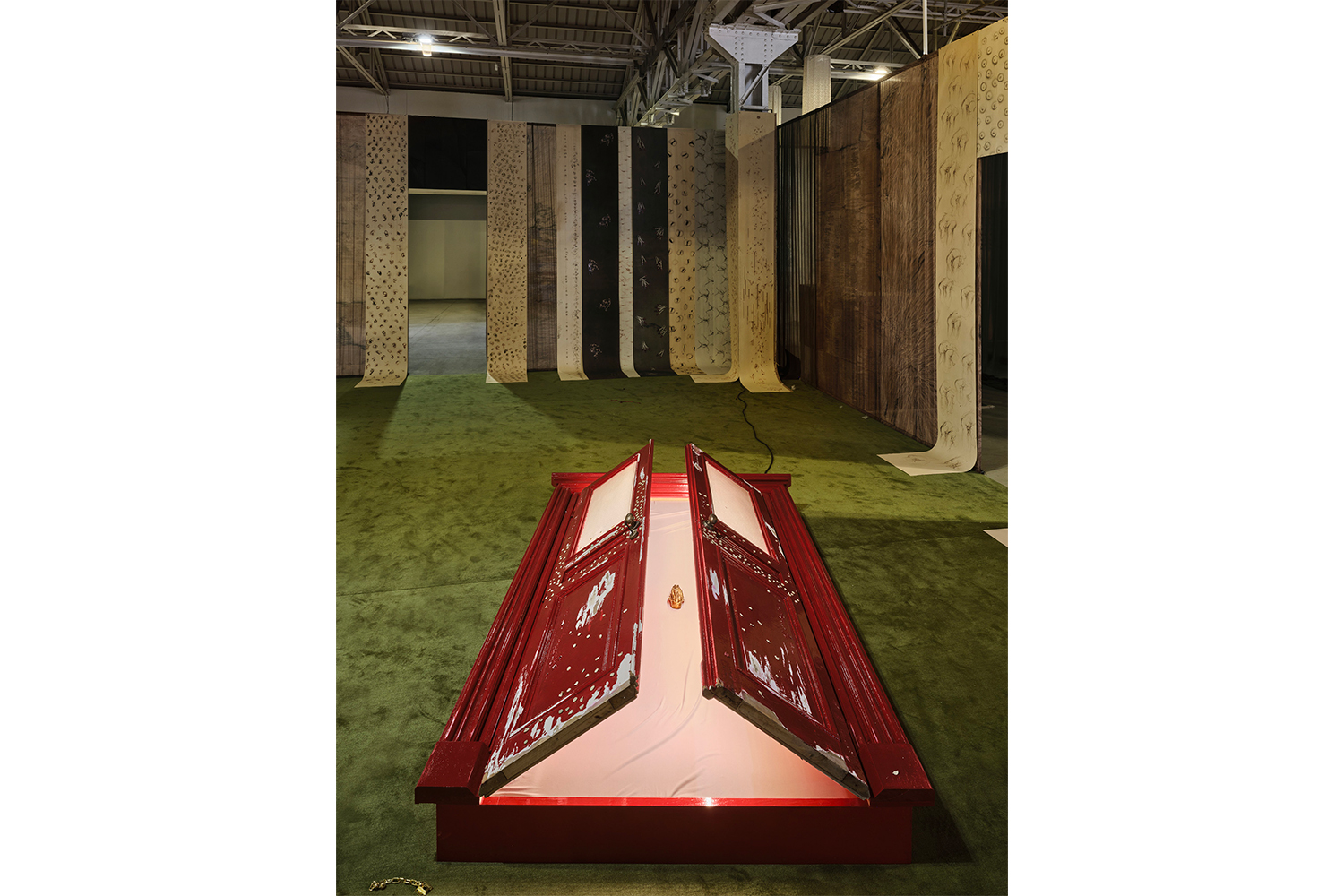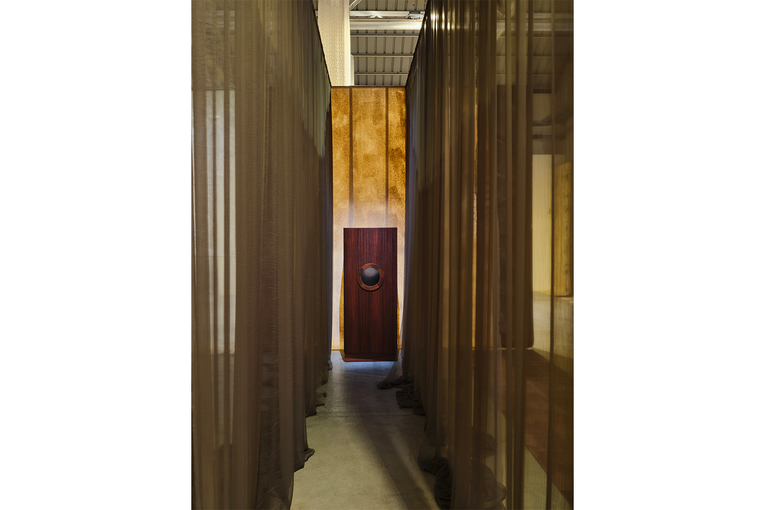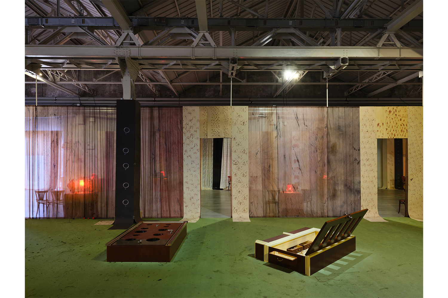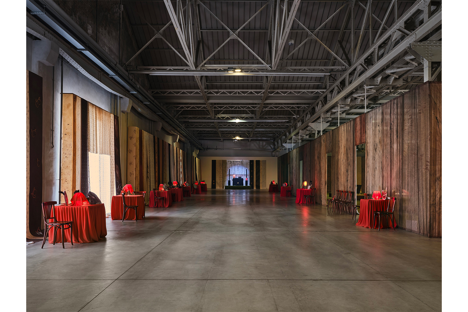 Nel romanzo omonimo di Daphne du Maurier pubblicato nel 1938, da cui deriva il titolo della mostra, Rebecca non entra mai davvero in scena. Eppure tutto — i corridoi, i tendaggi, i rituali minimi della casa — porta la traccia del suo passaggio, persino l’aria che si respirava a Manderley. La sua assenza non coincide con un vuoto, non si concentra in un punto, ma si diffonde. È questa distribuzione di assenza a generare tensione, perché ciò che non si vede continua ad agire proprio nella misura in cui non si lascia localizzare. Curata da Fiammetta Griccioli, la mostra di Benni Bosetto presso HangarBicocca sembra partire da questa intuizione per tradurla in un dispositivo spaziale. In mostra infatti, la presenza si espande più che concentrarsi nello spazio. Tuttavia, ciò che nel romanzo si costruisce per sottrazione, qui è dato fin dall’inizio, come una condizione già stabilita. Non prende forma nel tempo dell’esperienza ma precede lo sguardo.