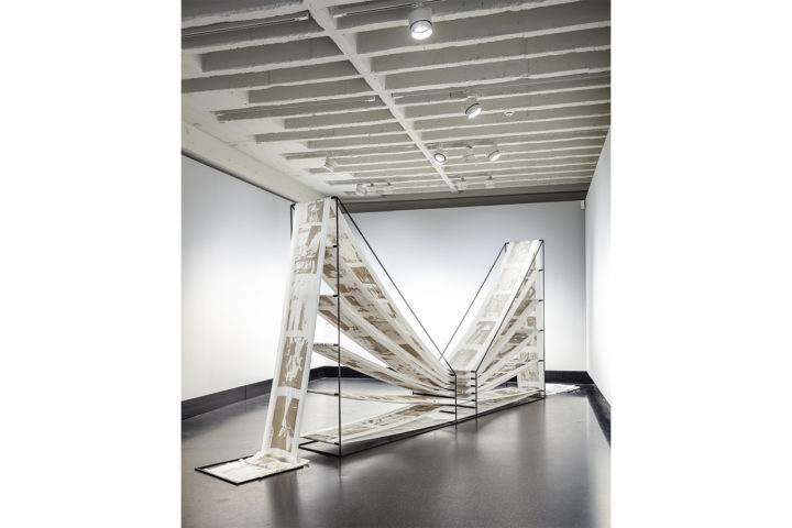 Ispirata dalla narrativa cinematografica del regista senegalese Ousmane Sembène e dalle teorie del filosofo camerunense Achille Mbembe, Adji Dieye, artista multidisciplinare che vive e lavora tra Milano e Dakar, rivolge il suo sguardo critico alle architetture che caratterizzano gli spazi pubblici e istituzionali, analizzando il modo in cui influiscono sul senso di comunità e l’identità personale. Per Dieye, l’archivio non rappresenta un punto di partenza statico ma uno strumento di indagine dinamico e malleabile, in grado di rivelare i meccanismi di potere da cui è esso stesso plasmato. Nell’installazione Culture Lost and Learned by Heart: Untitled (2020 – presente), Dieye combina immagini provenienti da archivi personali e dagli Archivi Iconografici Nazionali del Senegal, fondati nel 1913 durante il regime coloniale francese. Attraverso questa giustapposizione, l’artista evidenzia l’impossibilità di una linearità storica nel contesto post-coloniale, mettendo in luce inquietanti somiglianze tra passato e presente e rivelando un persistente regime di dipendenza.