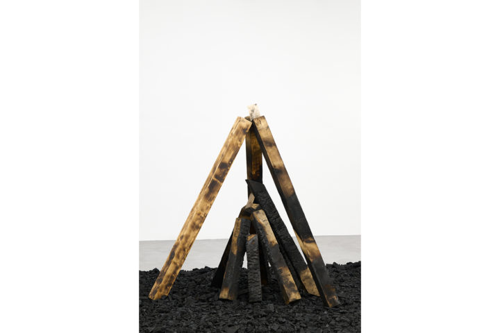 L’approccio all’archivio come dispositivo creativo si presenta come un atto di resistenza contro la tendenza colonizzatrice a categorizzare, strumentalizzare e ridurre storie e identità individuali a una narrazione universale e omologante. Nell’installazione site-specific di Gabriel Meskel (2024), cenere e polvere non segnano la fine della materia, ma ne simboleggiano il rinnovamento: un fertilizzante naturale e un emblema di rigenerazione, dove la distruzione dà origine a una nuova vita. In questa visione, la polvere diventa un elemento catartico, simbolo di trasformazione e caos creativo. La sua capacità di offuscare e dissolvere i confini stimola una riflessione sui dualismi tra assenza e presenza, forma e metamorfosi, creazione e distruzione.