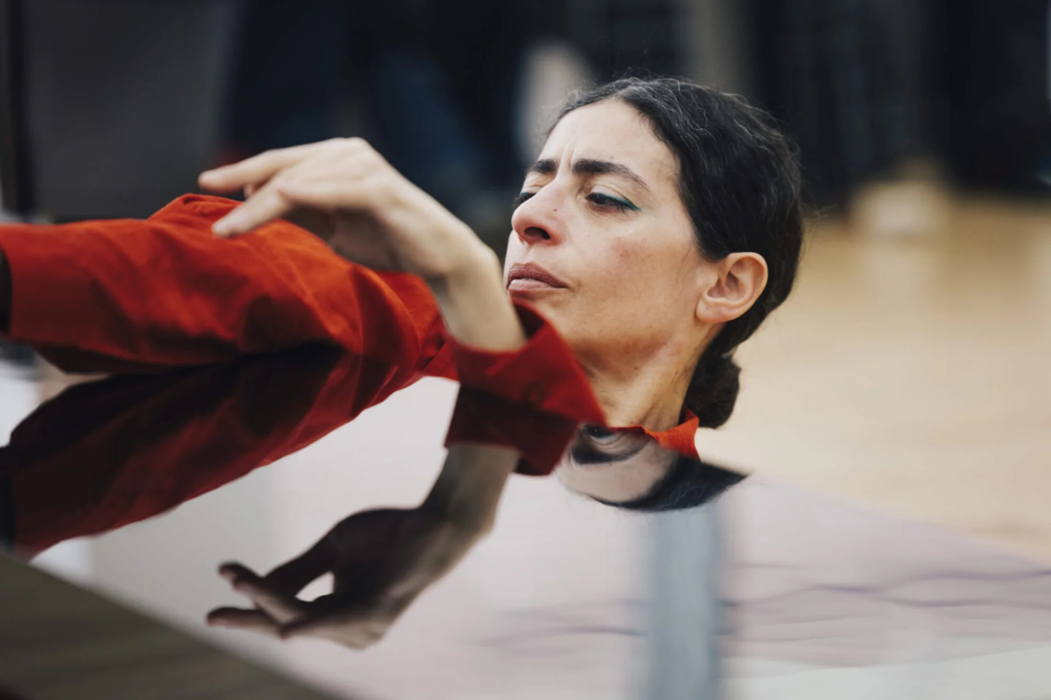 Da almeno quindici anni, tutti i lavori di Hassabi rielaborano i codici della contemplazione o, come suggerisce Teresa Macrì nella recente pubblicazione Stato di incanto. Danza, non-danza, post-danza e performance art (2025), della “sculturizzazione” del corpo performativo. La complessità stratificata del suo lavoro – di cui resta traccia per esempio in White Out, una performance presentata alla Fondazione Merz di Torino durante l’ultima edizione del Festival delle Colline Torinesi – ha orientato l’attenzione di critici e studiosi — da Claire Bishop in avanti — soprattutto sulla spettatorialità, relegando in secondo piano la matrice femminista a cui l’artista fa ricorsivamente riferimento.