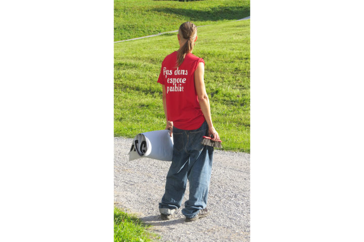 Sara e Chiara, attraverso il loro approccio performativo, non svolgono solo un compito di decostruzione (del genere, del sesso, e così via), ma nominano e rendono conto della potenza politica dei corpi nel femminismo, nell’invenzione di pratiche corporee, di gesti imprevisti e travolgenti.5 Trasformano e immaginano un mondo al contrario – in un movimento contro-tempo. Un ritmo che fa sgambetto alle posture rigide e verticali, come quelle istituzionali, hackerandole. Condividono un posizionamento diretto e consapevole, dove tutto può essere riorganizzato e reinterpretato, sia nell’essere visto che nel diventare visibile. Privandoci del potere di osservare le cose come sempre, ci spingono fuori fuoco. Dove resistere non è facile. Invece, Sempre qua siamo.